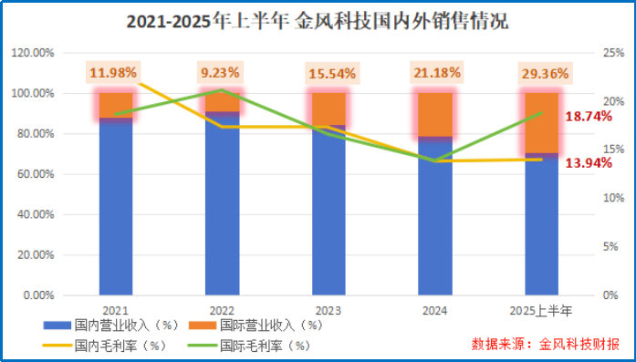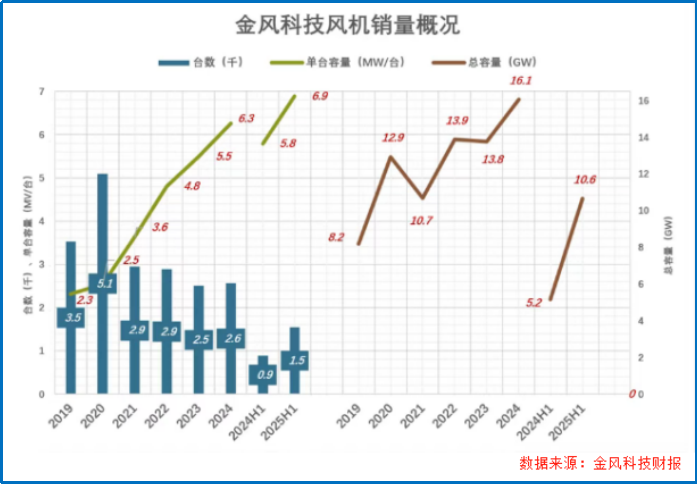 2025年上半年,金风科技的海外业务毛利率比国内高出了约5个百分点。