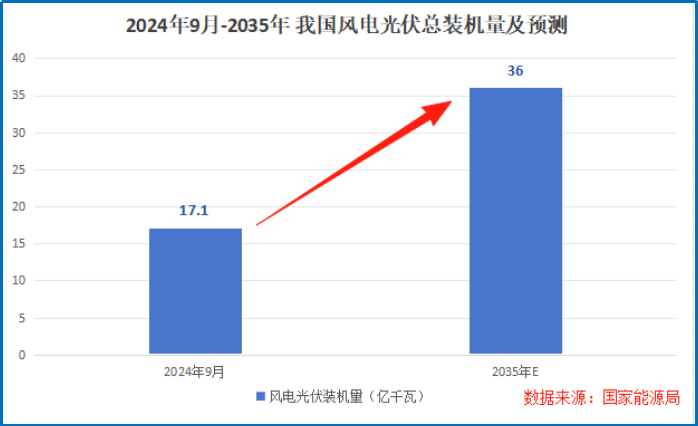 下此结论为时尚早。2025年9月,一个更大的目标彻底打消了这一忧虑:2035年风电光伏总装机力争达到36亿千瓦。