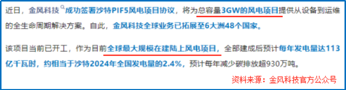 捷报很快传来。2025年10月28日,金风科技宣布签署沙特PIF5风电协议,拿下了全球最大规模的在建陆上风电项目,总容量达3GW。