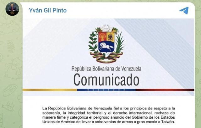 其外交部公开发表声明,强烈批评美国批准大规模对台军售,指责这是“严重干涉中国内政”。声明重申,委内瑞拉坚定支持一个中国原则,强调台湾是中国领土不可分割的一部分。